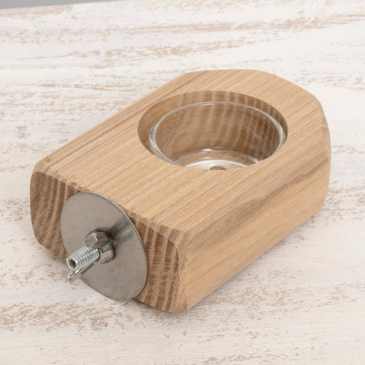 Futternapf Buchenholz mit Glaseinsatz für Sittiche