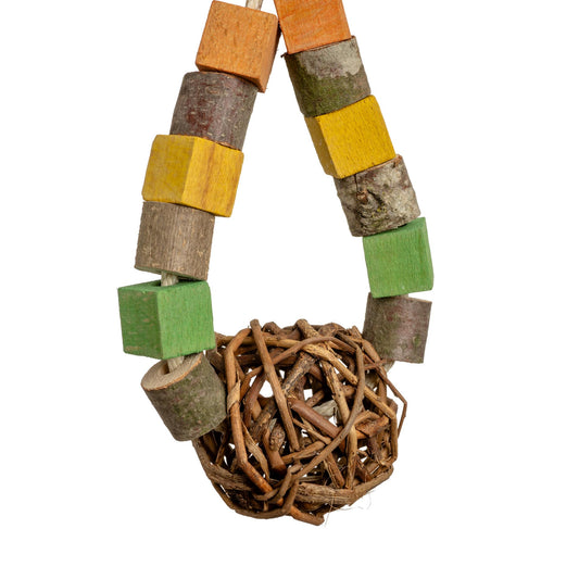 Naturholztriangel mit Weidenball - Papageienspielzeug