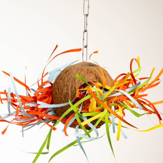 Kokosnuss-Futterhäuschen – Sittichspielzeug