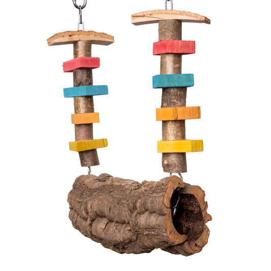 Kork-Schaukel mit Knabberholz – Papageienspielzeug