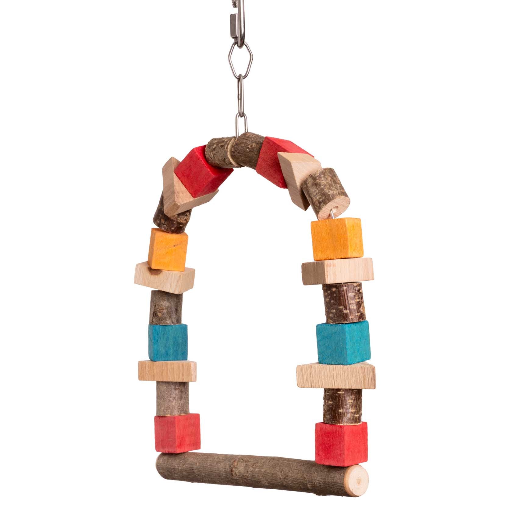 Bogenschaukel für Sittiche – Naturholz & bunte Holzteile