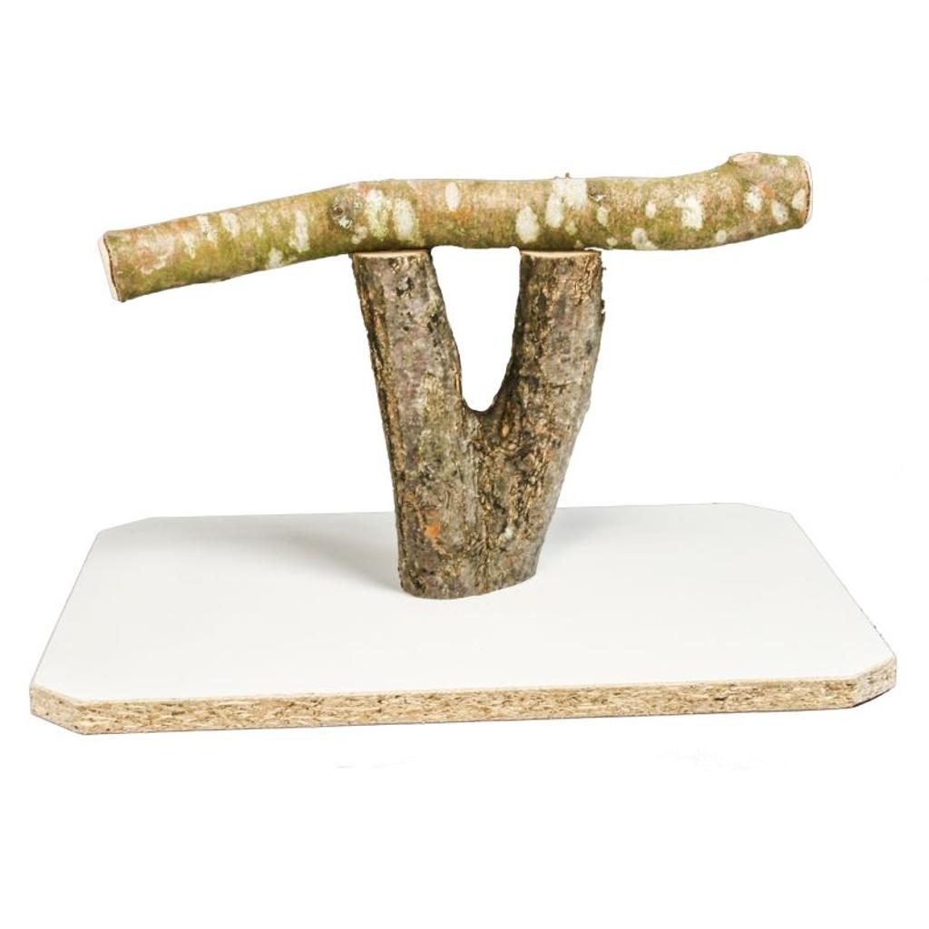 Freisitz groß für Papageien Grundplatte aus abwaschbarer Spanplatte mit Naturholz Sitzast.