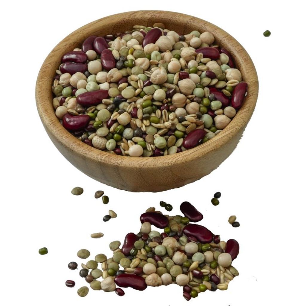 Zusammensetzung: Weizen, Kydneybohnen, AdzukiBohnen, Wicken, Nackthafer, Erbsen, Linsen, Kichererbsen, Katjang