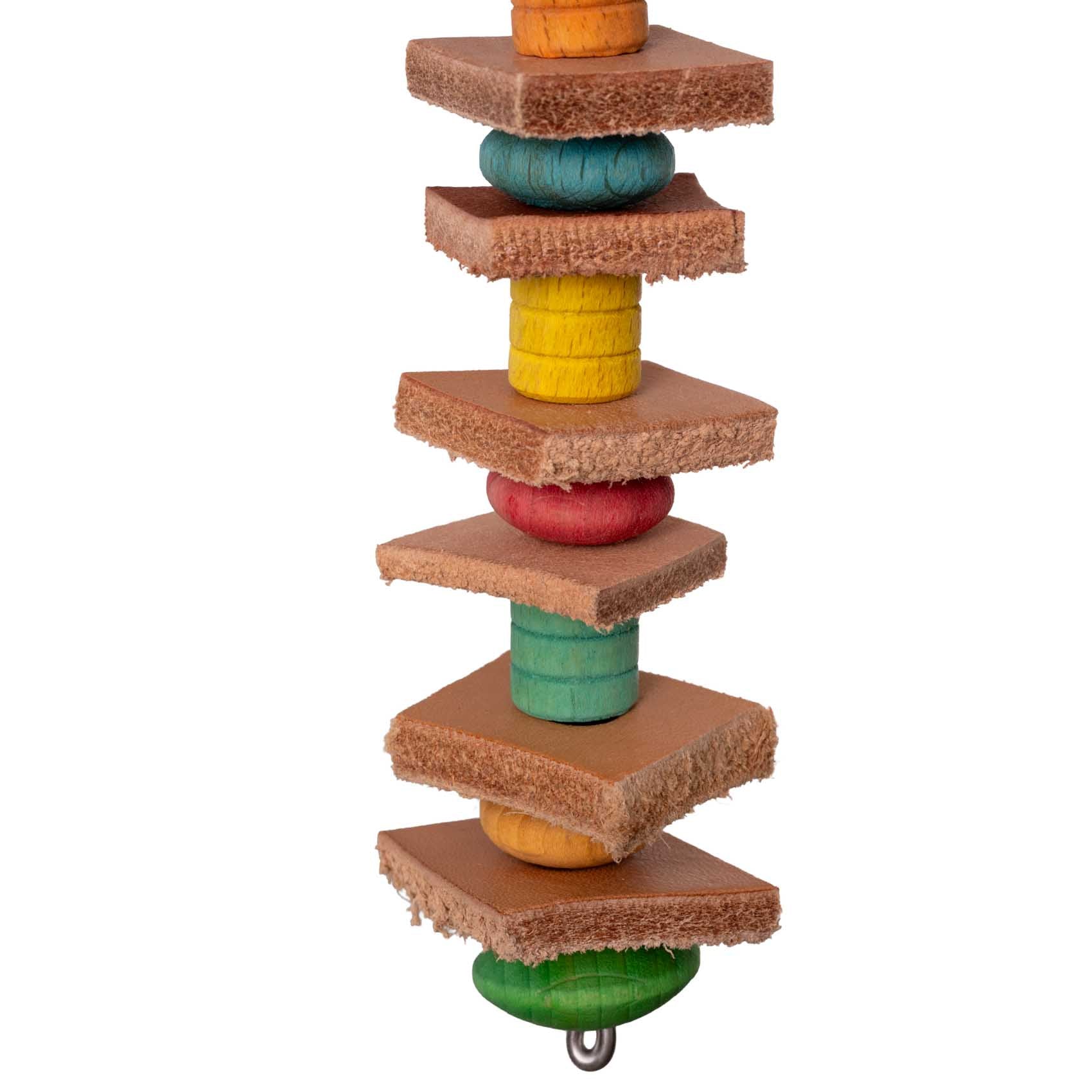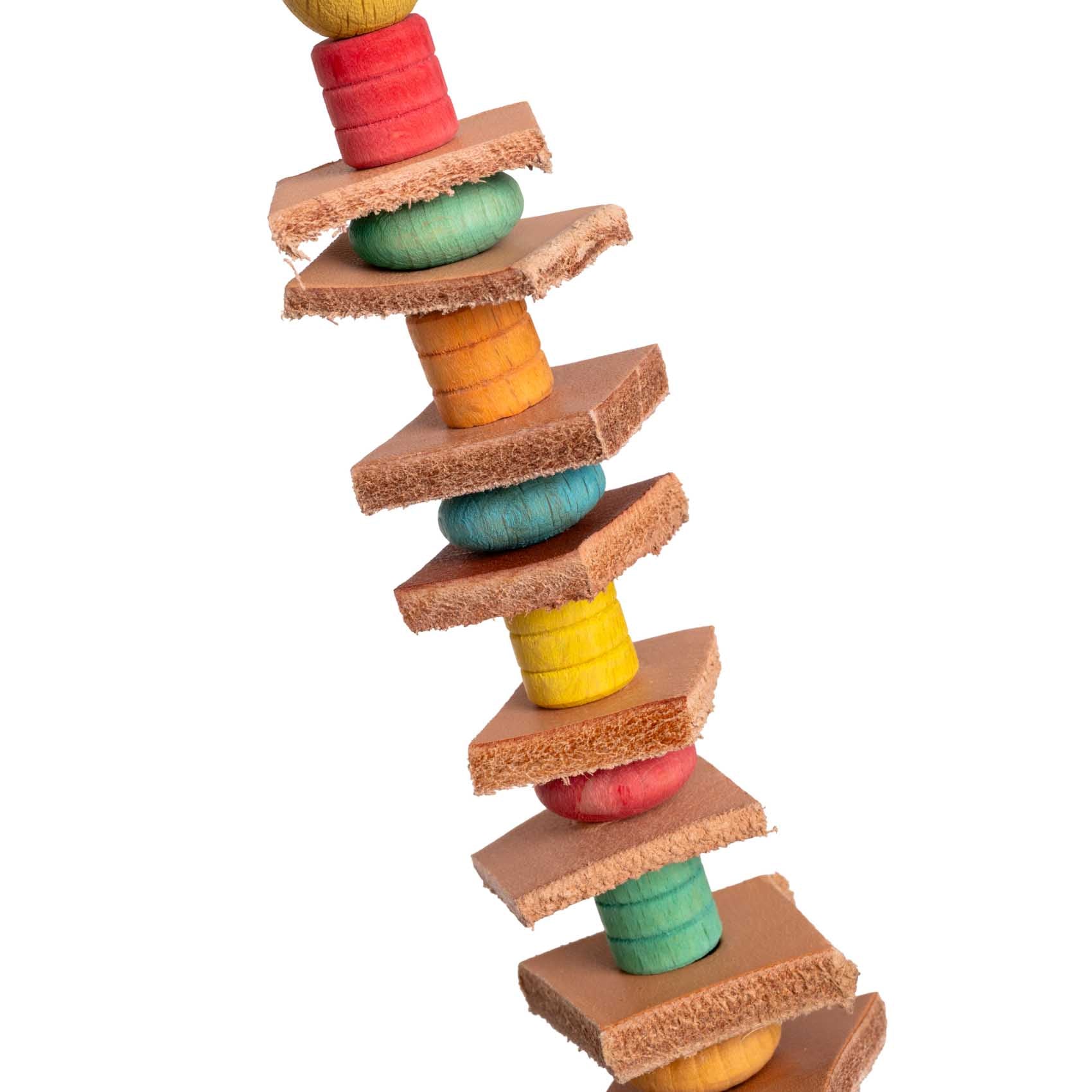 Dieses Lederspielzeug ermöglicht Wellensittichen eigenständiges Knabbern und Spielen, sodass sie geistig gefordert werden und ihre natürlichen Beschäftigungsbedürfnisse ausleben können.