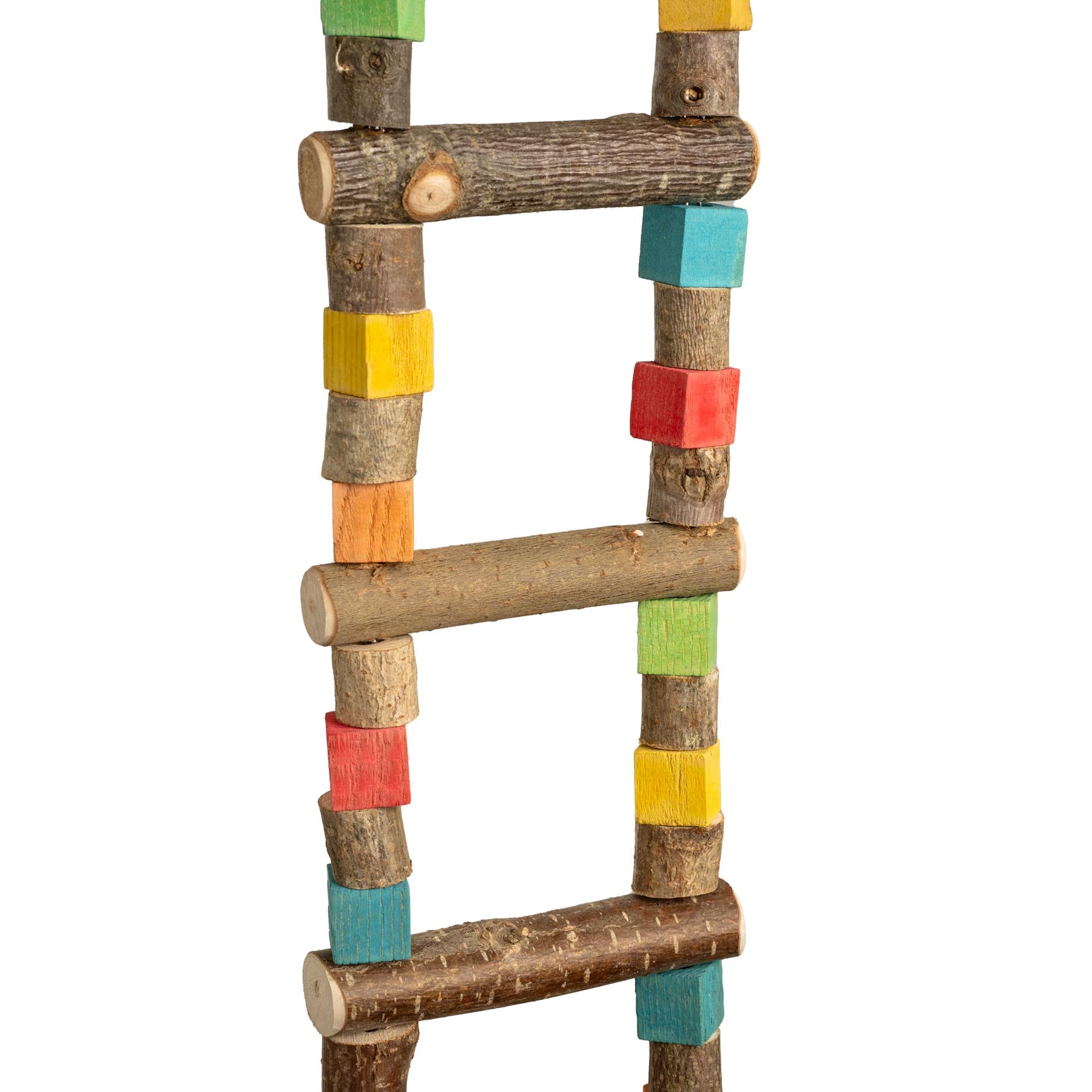 Bunte Sittich-Leiter medium aus Naturholz und bunten Holzklötzchen für Wellensittiche, Nymphensittiche und kleine Papageien.