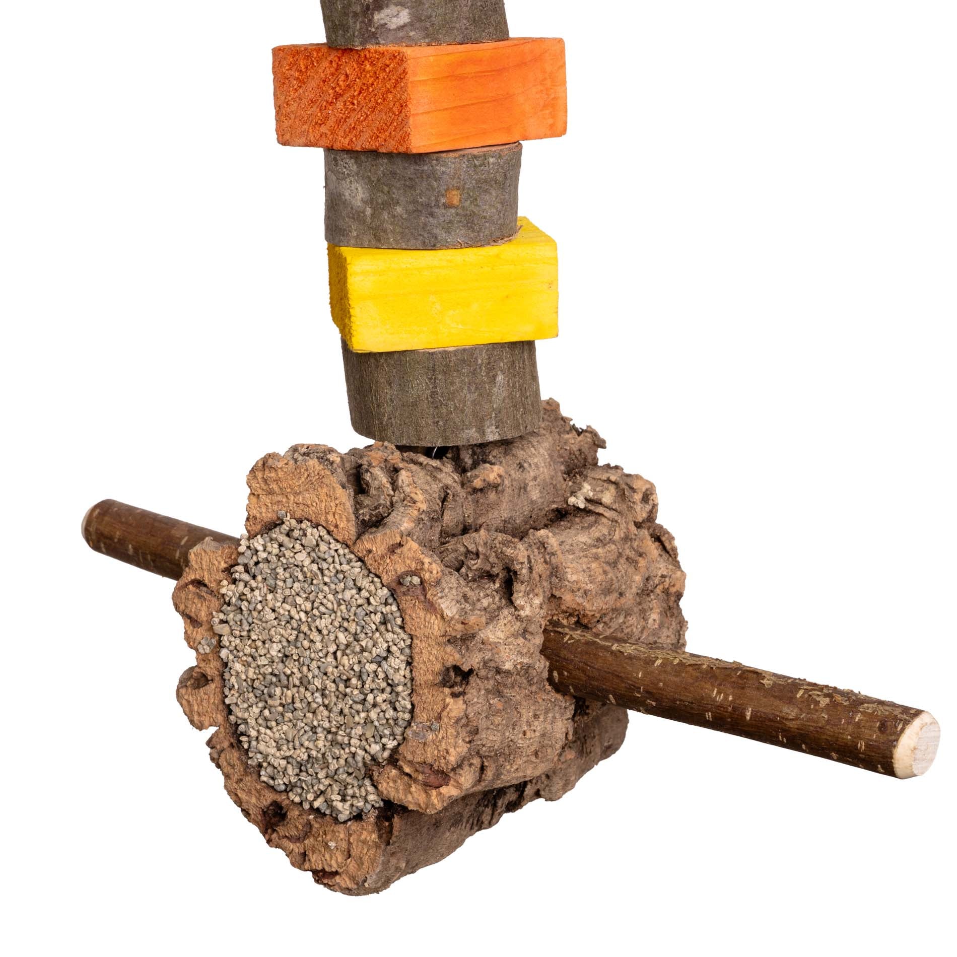 Papageien-Mineralien-Korkröhre mit Mineralstein, Holzklötzen und Sitzästen – für Amazonen, Graupapageien, kleine Papageienarten und Sittiche.