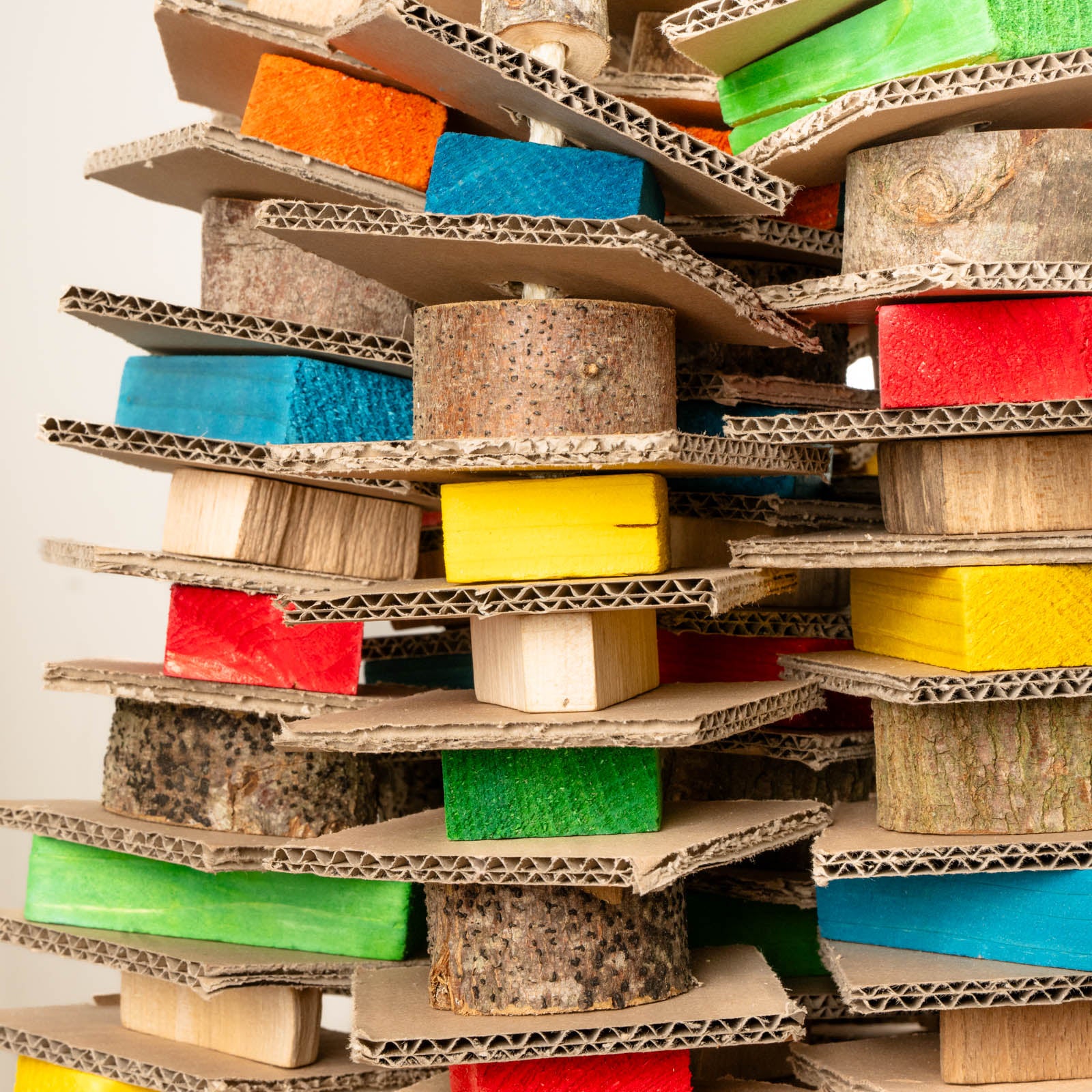 Riesiges Papageien-Spielzeug für Aras & Kakadus – Schredder-Spaß aus Naturholz, Pappe und Sisalseilen, handgefertigt in Deutschland für abwechslungsreiche Beschäftigung.