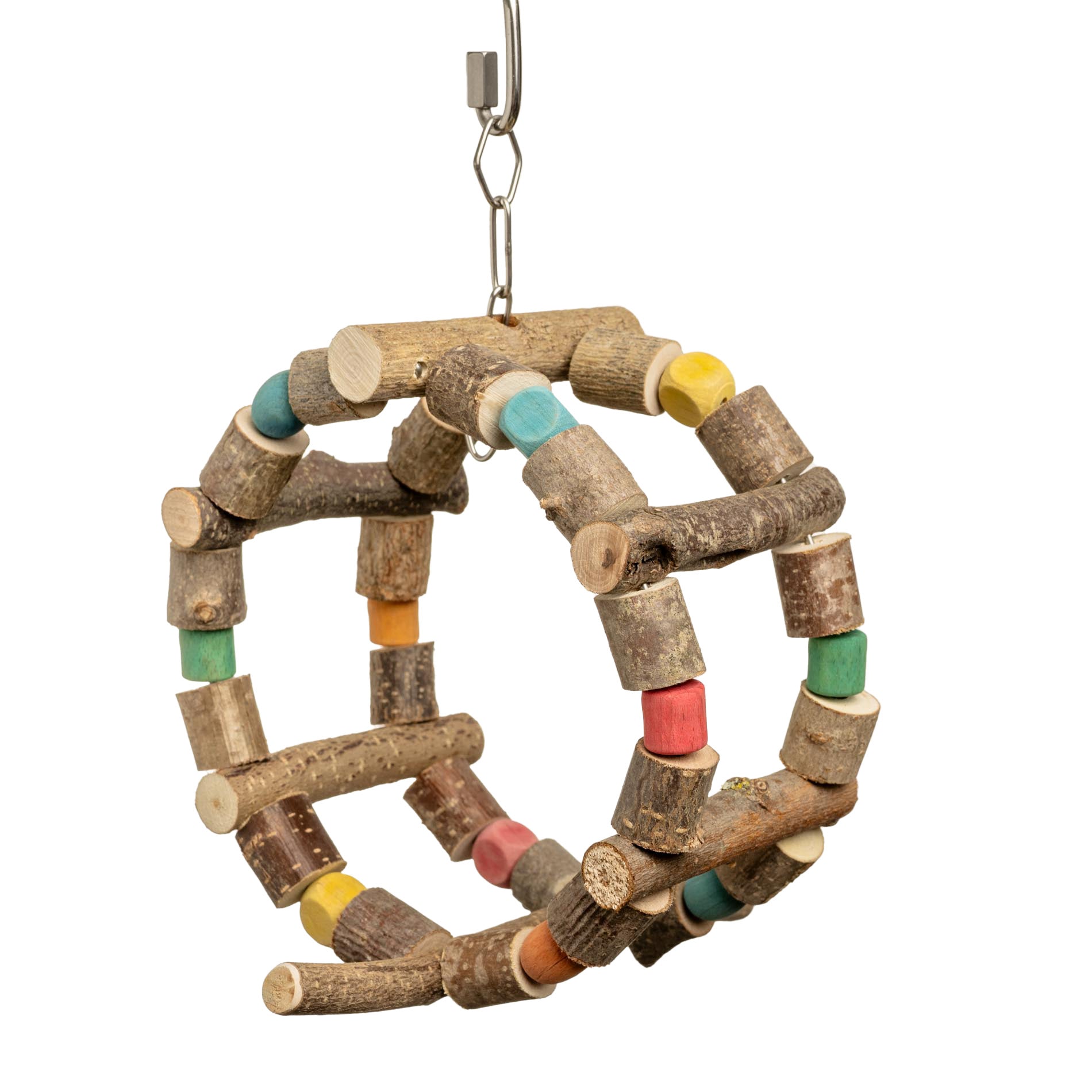 Das Sittich-Schaukelrad natur ist ein robustes Spielzeug für Wellensittiche, Nymphensittiche und kleine Papageien.