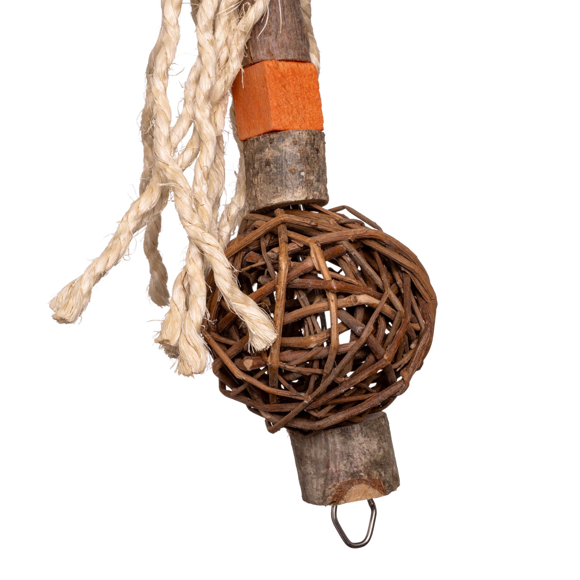 Sisalderwisch mit Weidenball, Holzklötzchen und Sisal – ideal für Großsittiche, Graupapageien, Amazonen und Edelpapageien.