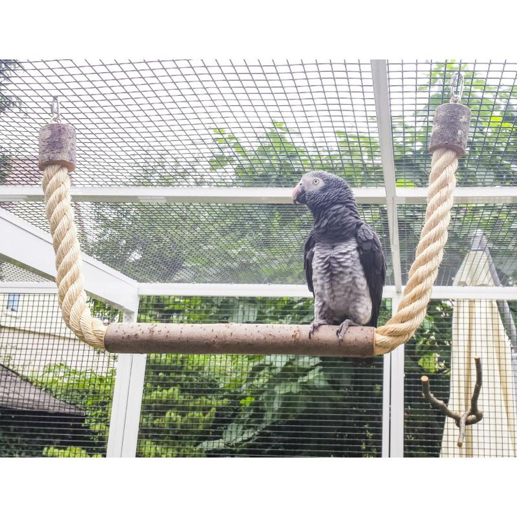 Diese Sisalschaukel für Papageien besteht aus 30 mm dickem Sisalseil, stabil befestigt in den Holzendstücken und der Natursitzstange. Ideal für zwei Papageien, z. B. Amazonen, Kakadus oder Graupapageien, zum Schaukeln, Balancieren und Spielen.
