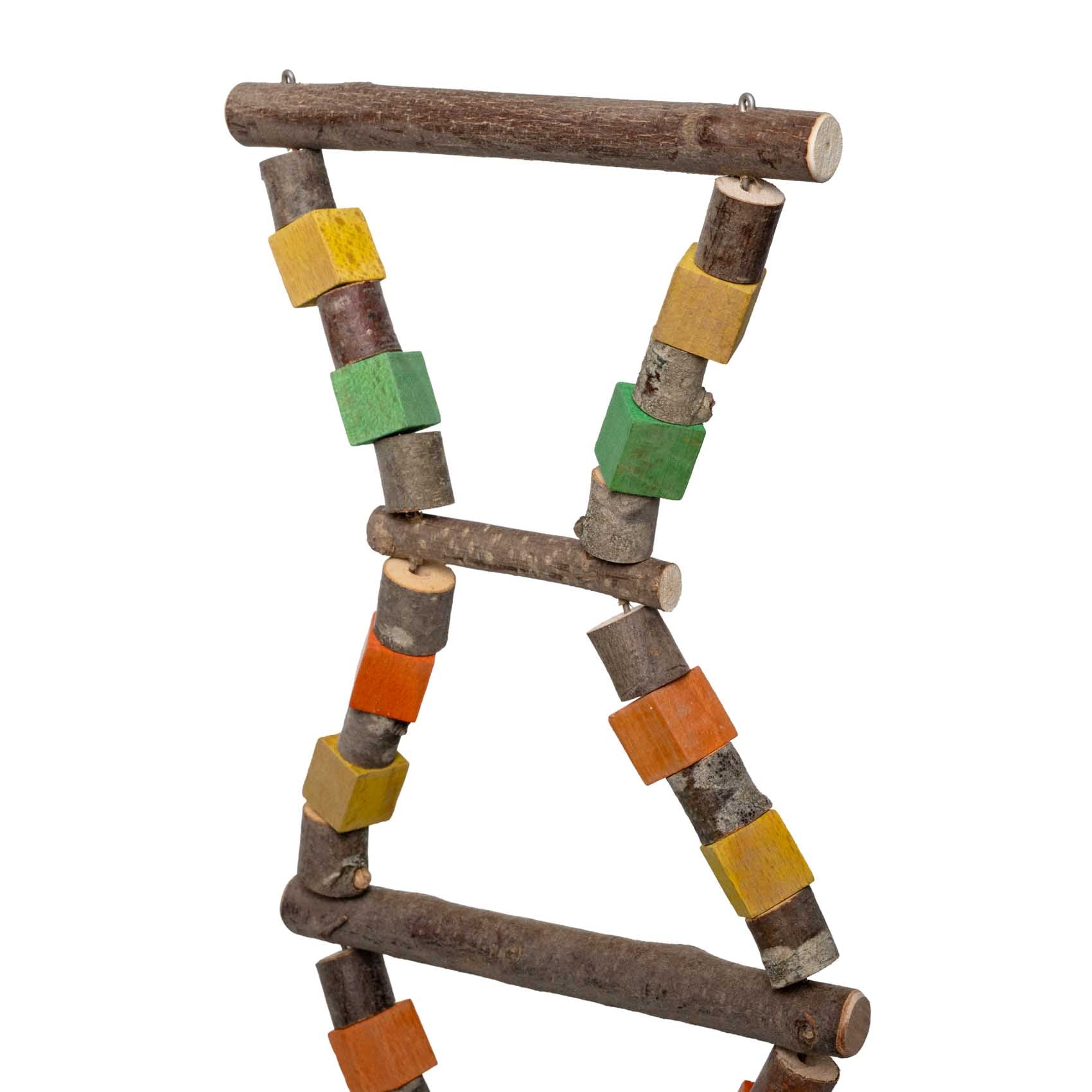 Bewegliche Trapez-Schaukel-Leiter für Sittiche und kleine Papageien. Ideal zum Klettern und Spielen, mit buntem Holz und sicherer Befestigung.