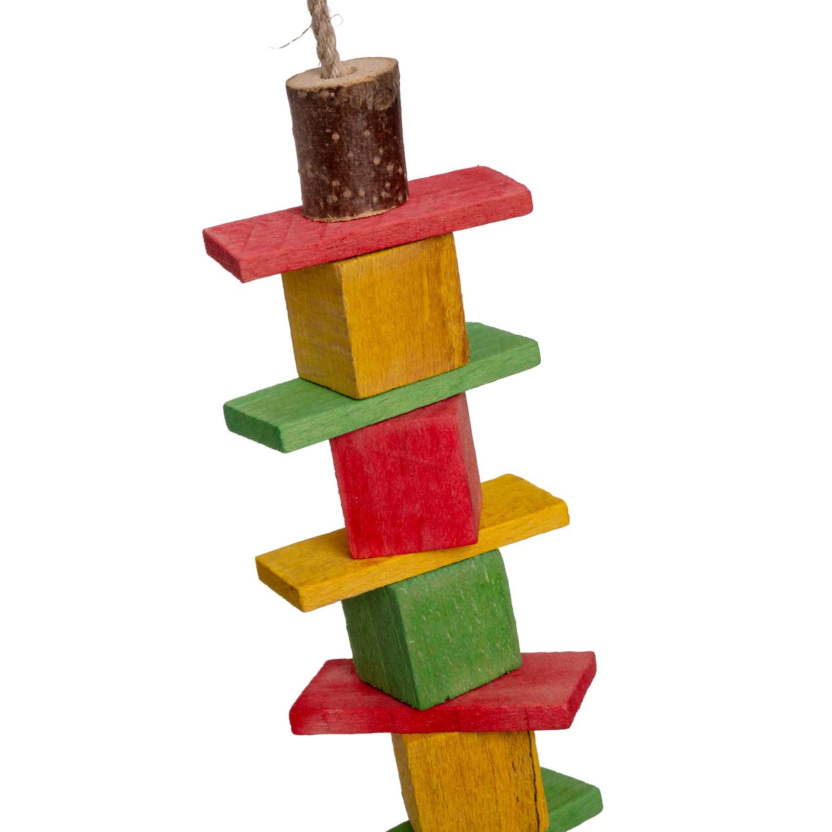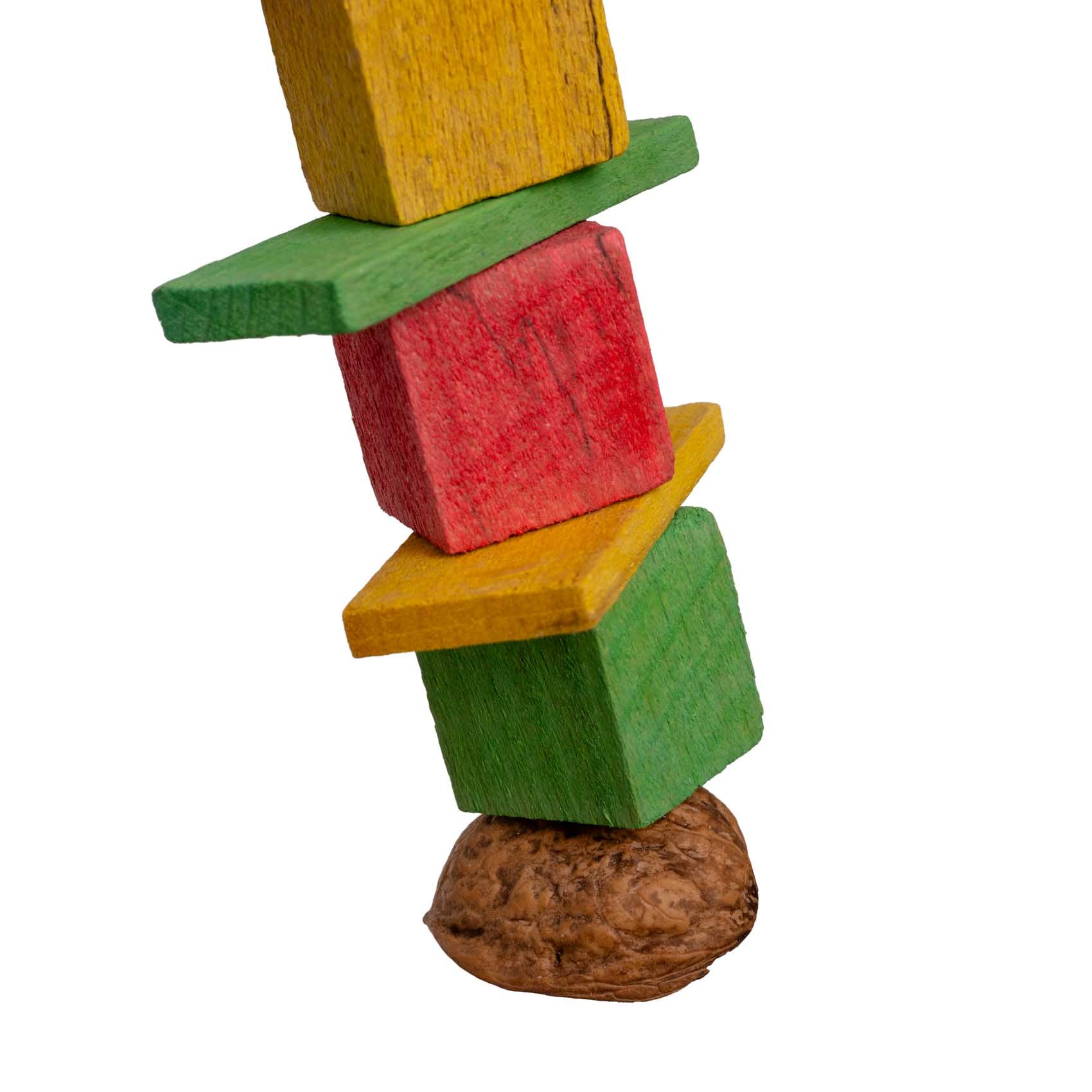 Dieses liebevoll handgefertigte Knabberspielzeug besteht aus einem robusten Sisalseil, das mit farbenfrohen Holzwürfeln, natürlichen Holzplättchen und einer echten Walnussschale verziert ist. Die Holzstücke sind sicher mit lebensmittelechten Fruchtfarben gefärbt.